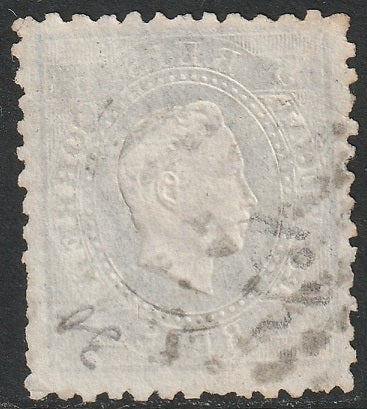 Portugal 1870 Sc 34b Mi 34xE Yt 35aA SG 133a used "1" (Lisboa) cancel perf 11 Mundifil 36x, ordinary paper, some damaged perfs